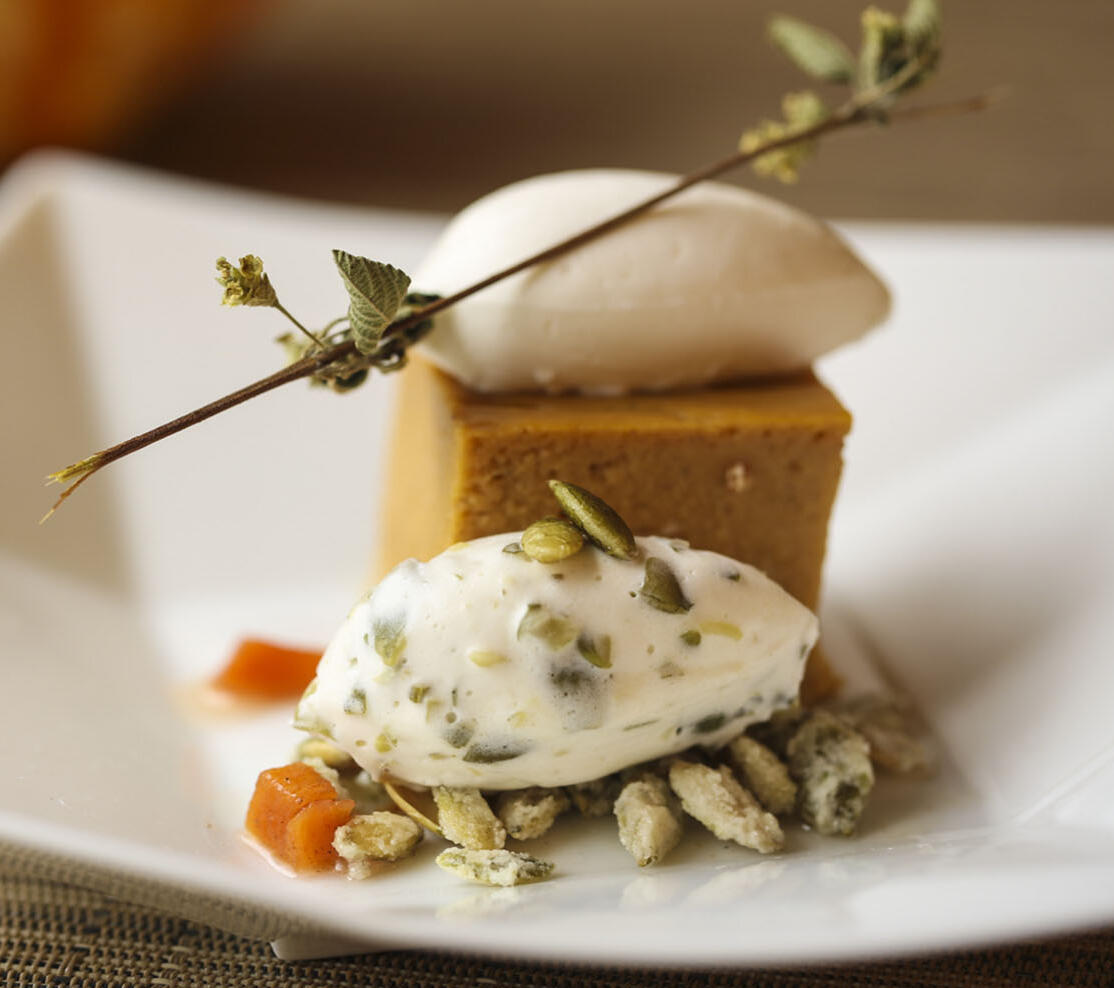 Pumpkin Pie with Fresh Pumpkin Seed Mousse