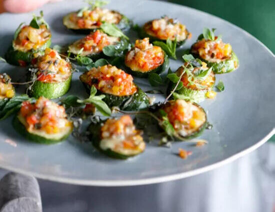 Tender ribbons of zucchini and bell pepper mingle with juicy tomato, each layer kissed by bright mint, basil, and oregano. A delicate crown of pecorino-style or Parmigiano-Reggiano cheese blankets the gratin, gently browning to bring a whisper of crisp and a deeper savory echo. The result is a harmonious balance of summer garden sweetness, herbal brightness, and elegant cheesiness.